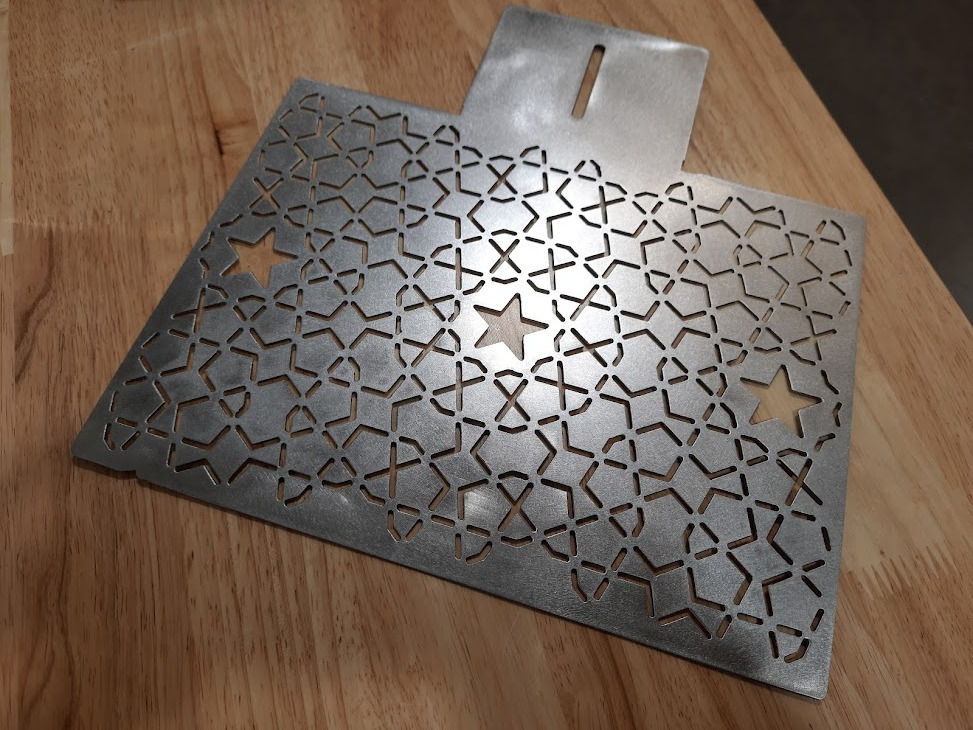 I’m cutting this piece on a Crossfire Pro with a 0.8mm tip, 22ga steel. It has 333 pierces and has serious warping.