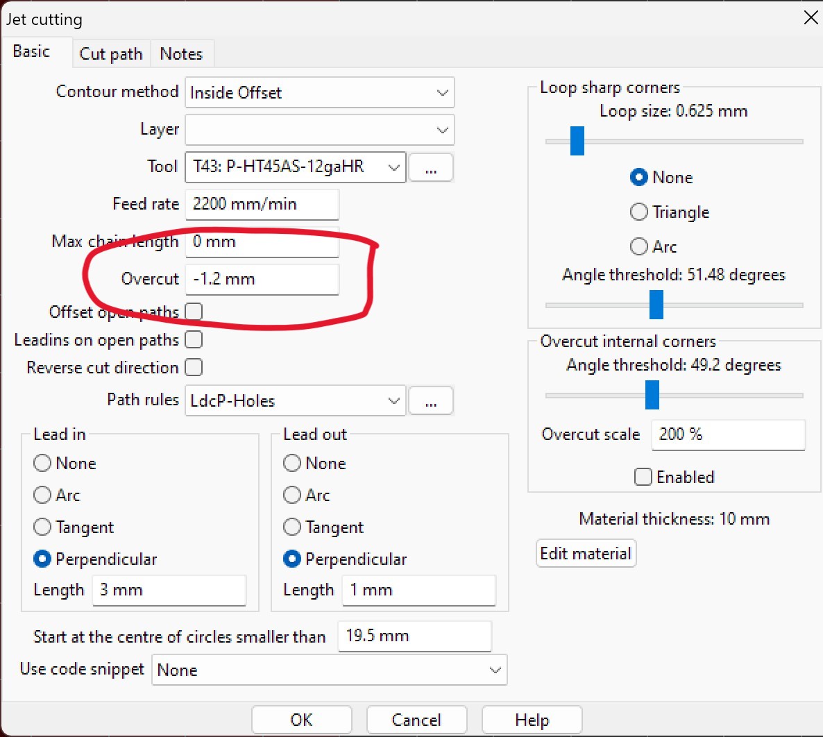 - use a 3mm OverCut in the Jet Operation.