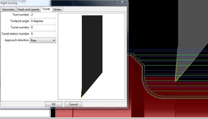 Changing the tool post angle in the Turret tab also has a strange effect on the toolpath.