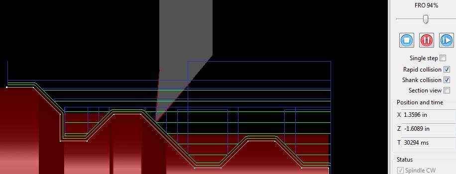 Changing the angle to a negative value shows a better toolpath but of course wrecks the shank and toolbit.